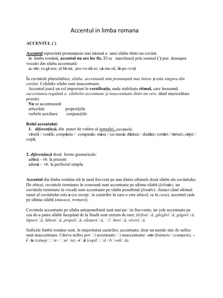 Pastila De Limbă Accentul In Limba Romană Principala Regulă Constă In Absenţa Regulilor