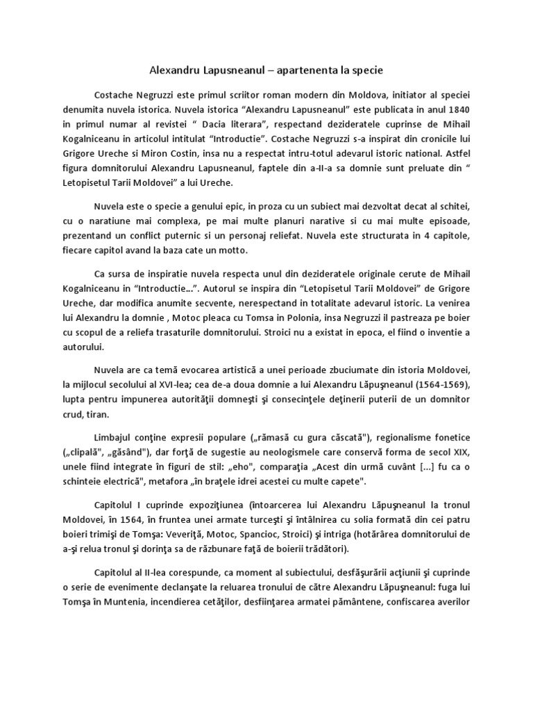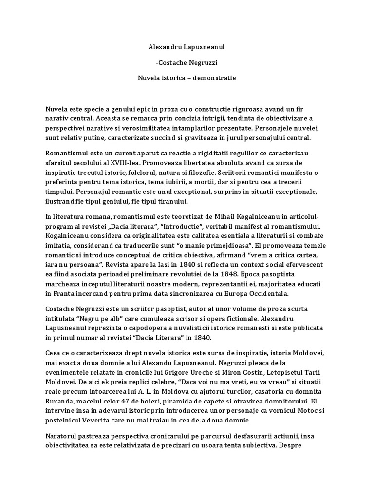 Referat Alexandru Lapusneanul Nuvela Istorica Romantica 318130 Graduo