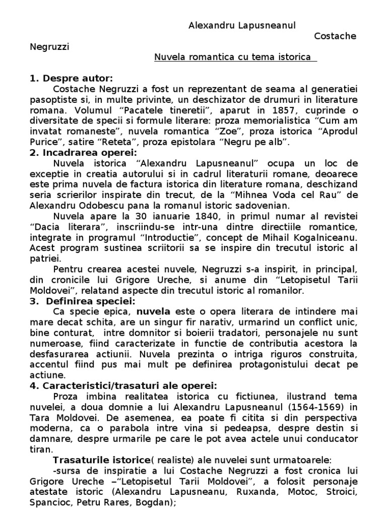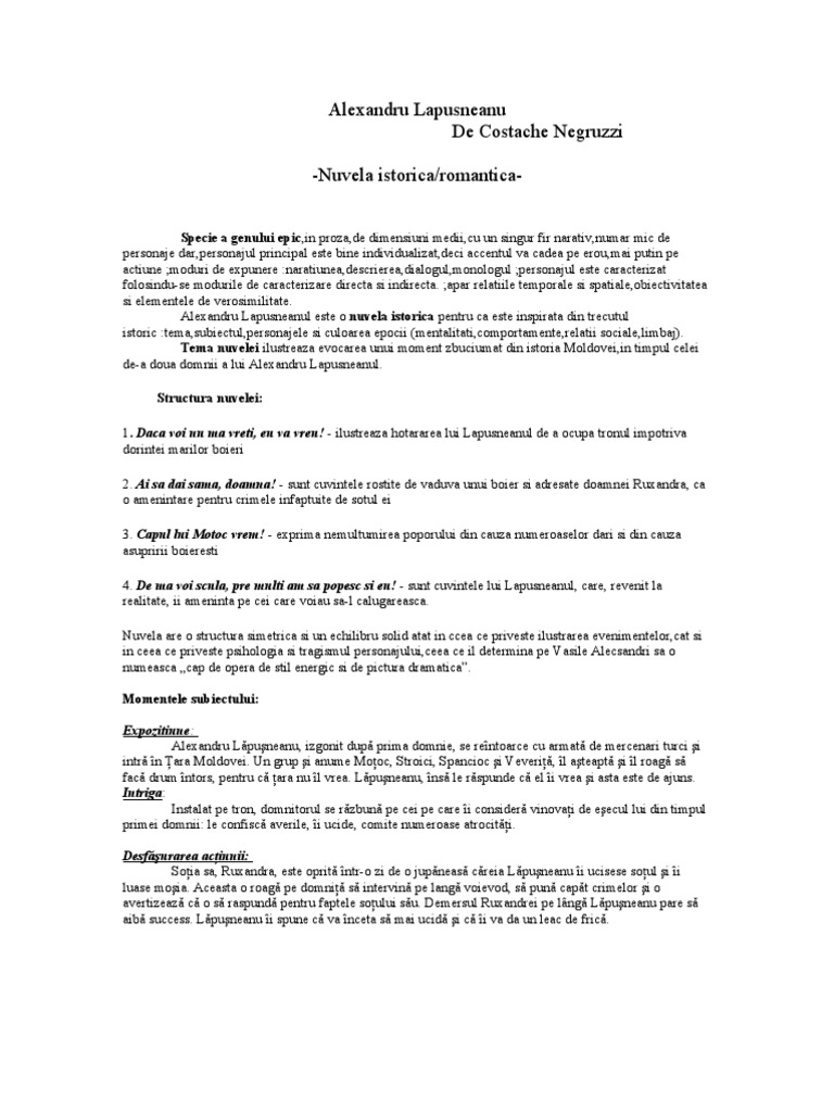 87554150 Alexandru Lapusneanul Nuvela Romantica Pdf