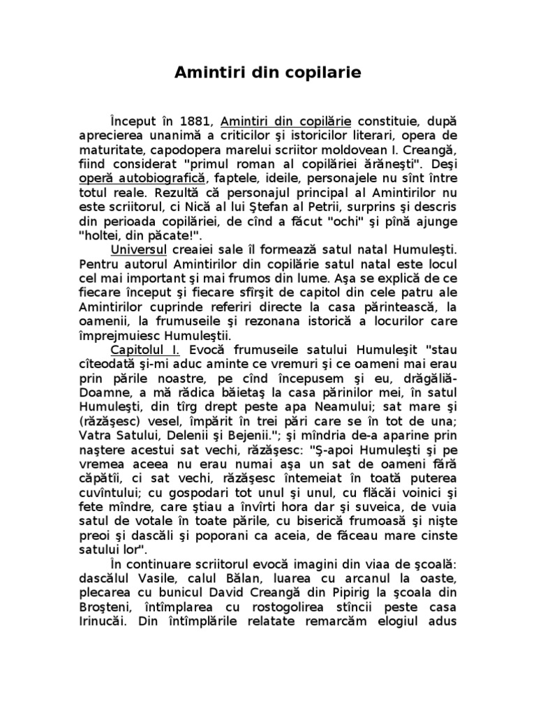 Suciu Mihai Amintiri Din Copilarie Rezumat Capitolul 1 2 3 4