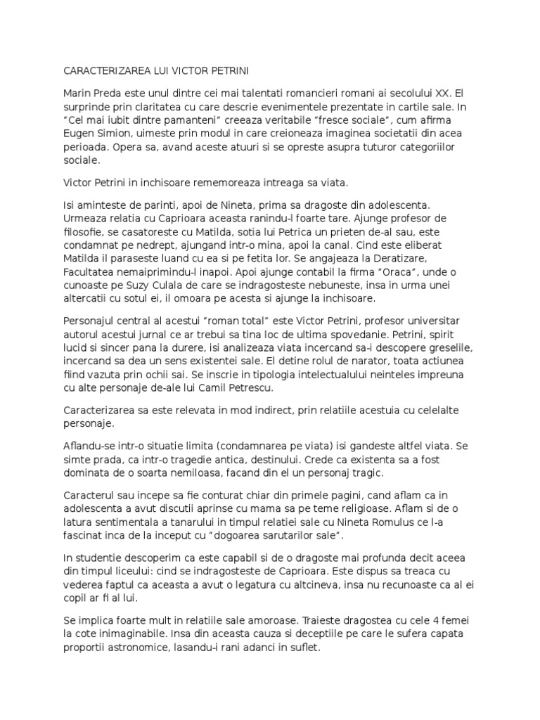 Caracterizarea Lui Victor Petrini