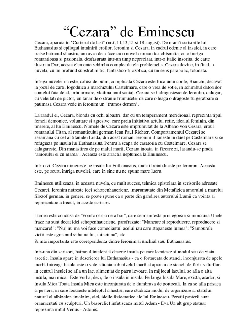 Cezara De Mihai Eminescu Rezumat