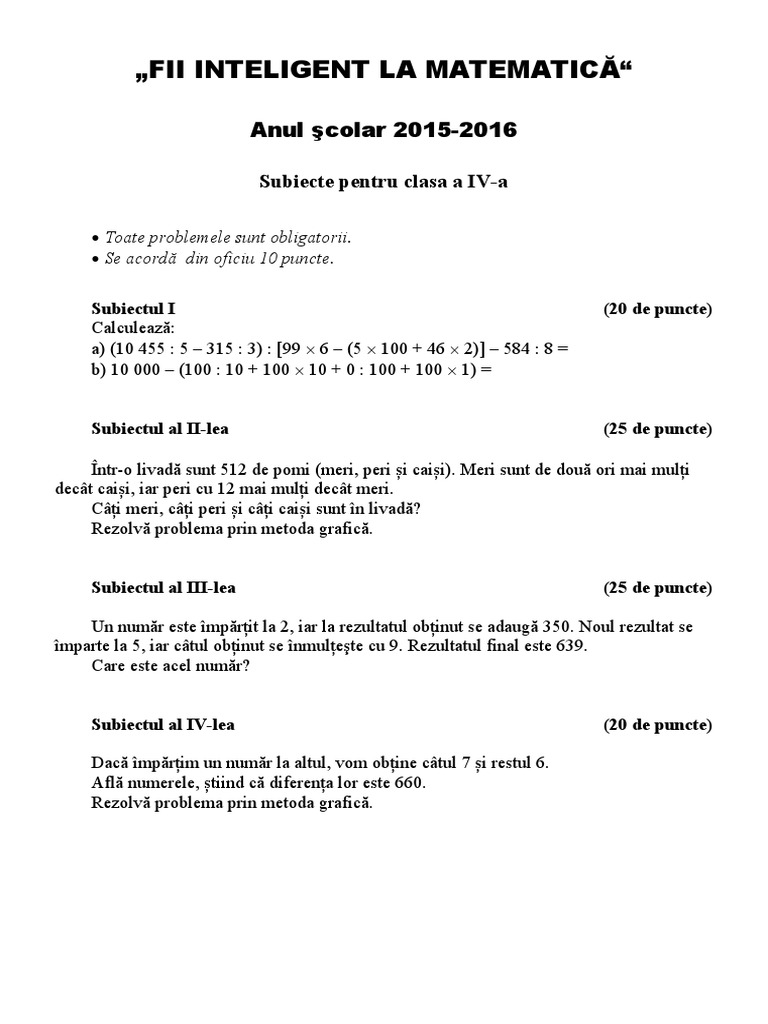 Subiecte Fii Inteligent La Matematica Blogul Clasei A Ii A B