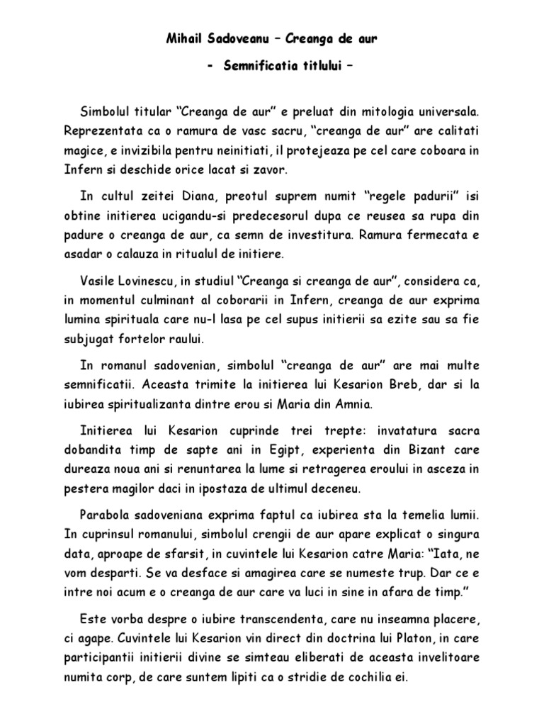 M Sadoveanu Semnificatia Titlui Creanga De Aur Docx