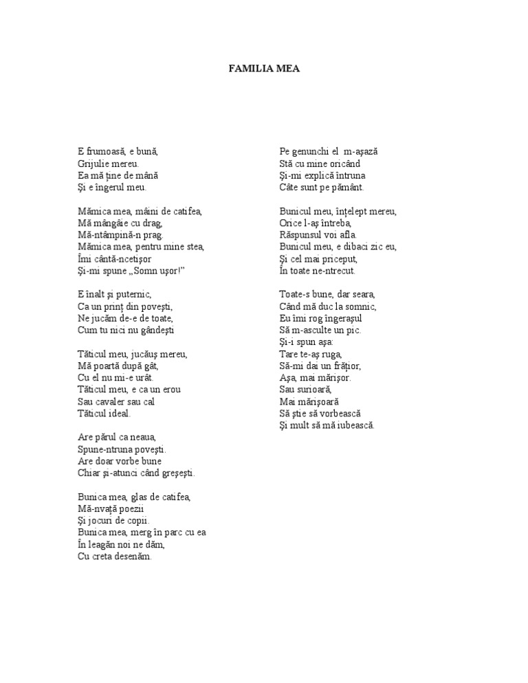 Poezii și Cantece Pentru Tema Eu și Familia Mea Gradinita1chiricari