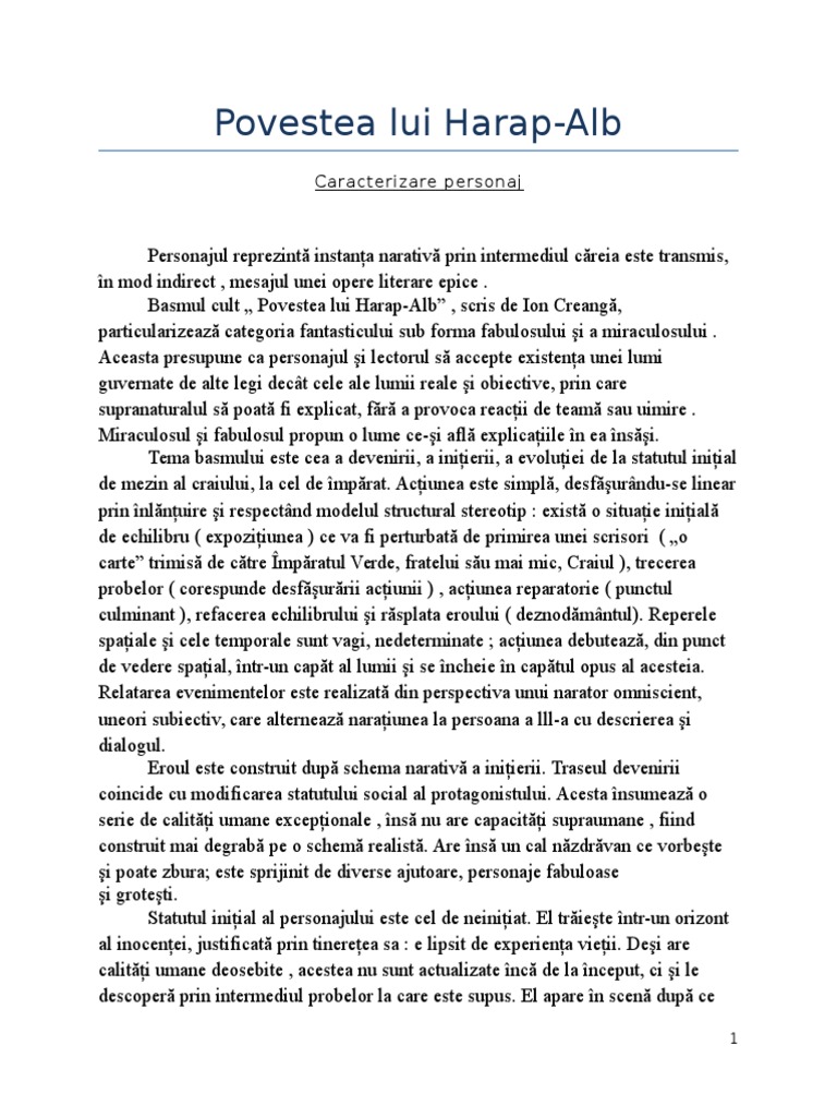 Doc Caracterizare Harap Alb Ana Maria Lepădatu Academia Edu