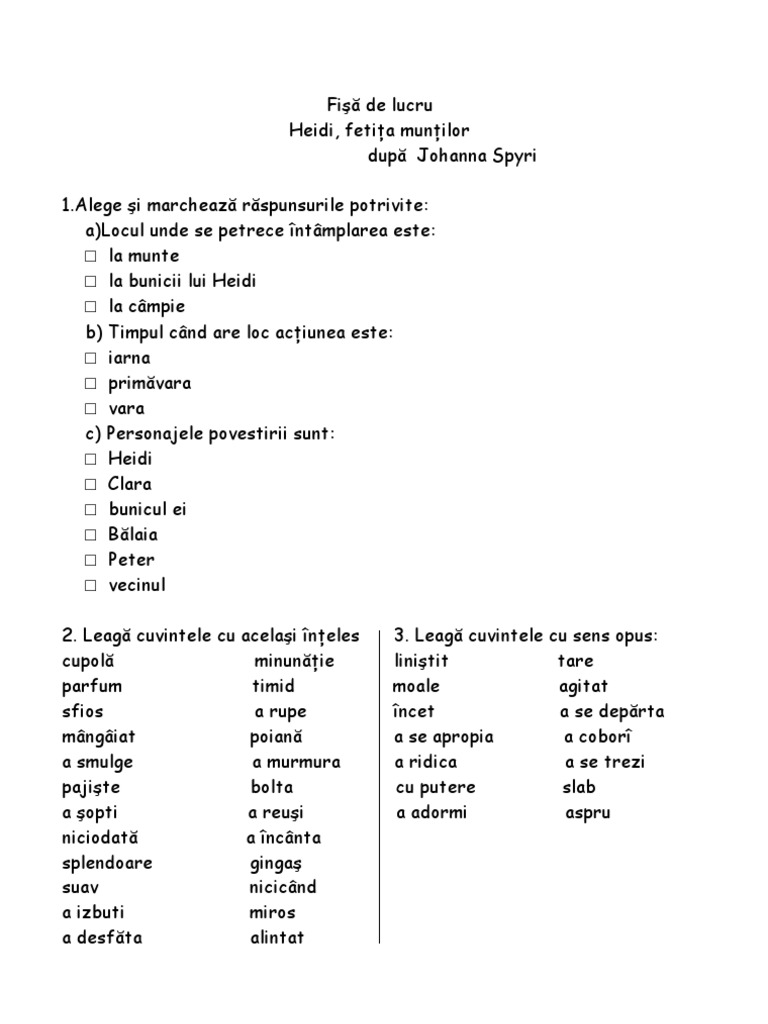 Heidi Fetiţa Munţilor De Johanna Spyri Rezumat Surasul Copilariei