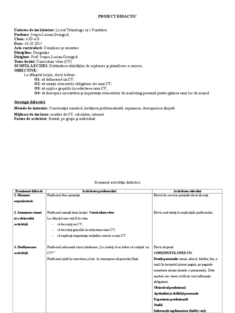 Referat Curriculum Vitae Instrument De Autoprezentare Tipuri De Curriculum Vitae Economie 234412