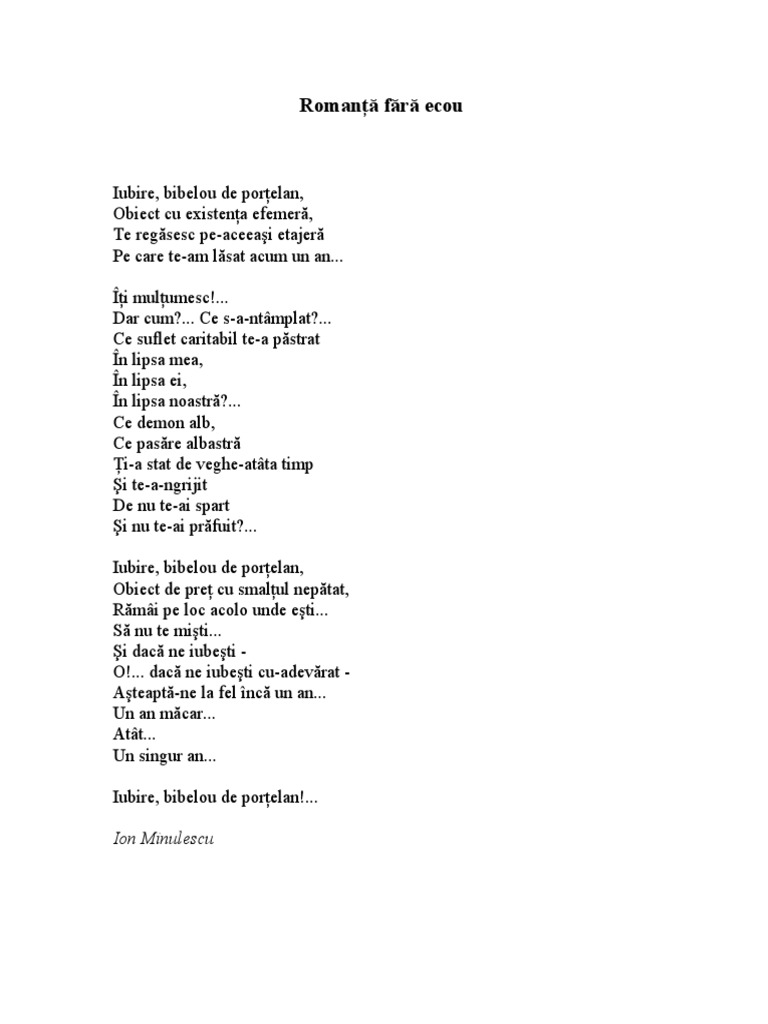 Romanță Fără Ecou De Ion Minulescu Yorick