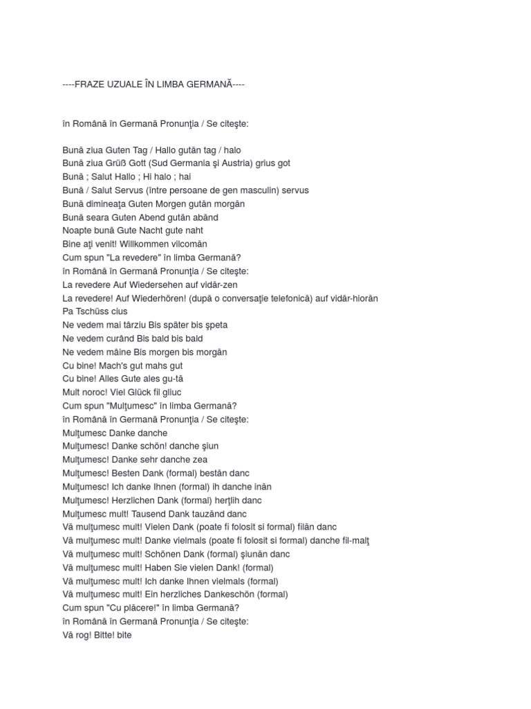 Cuvinte Uzuale In Limba Germana Limba Germana