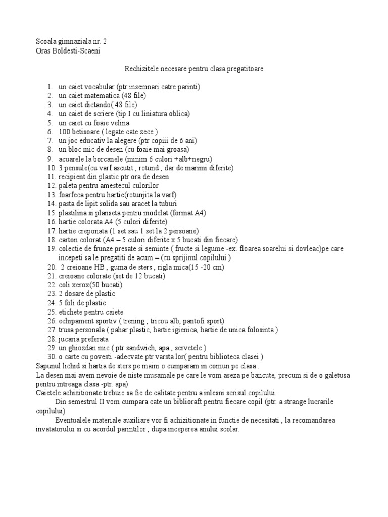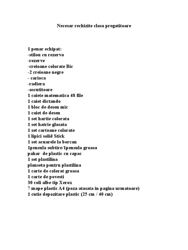 Necesarul De Rechizite Clasa I An Scolar 2012 2013 Infoclasa
