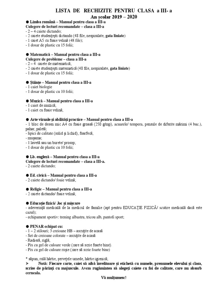 Rechizite Necesare Inceperii Noului An Scolar Clasa A Iii A