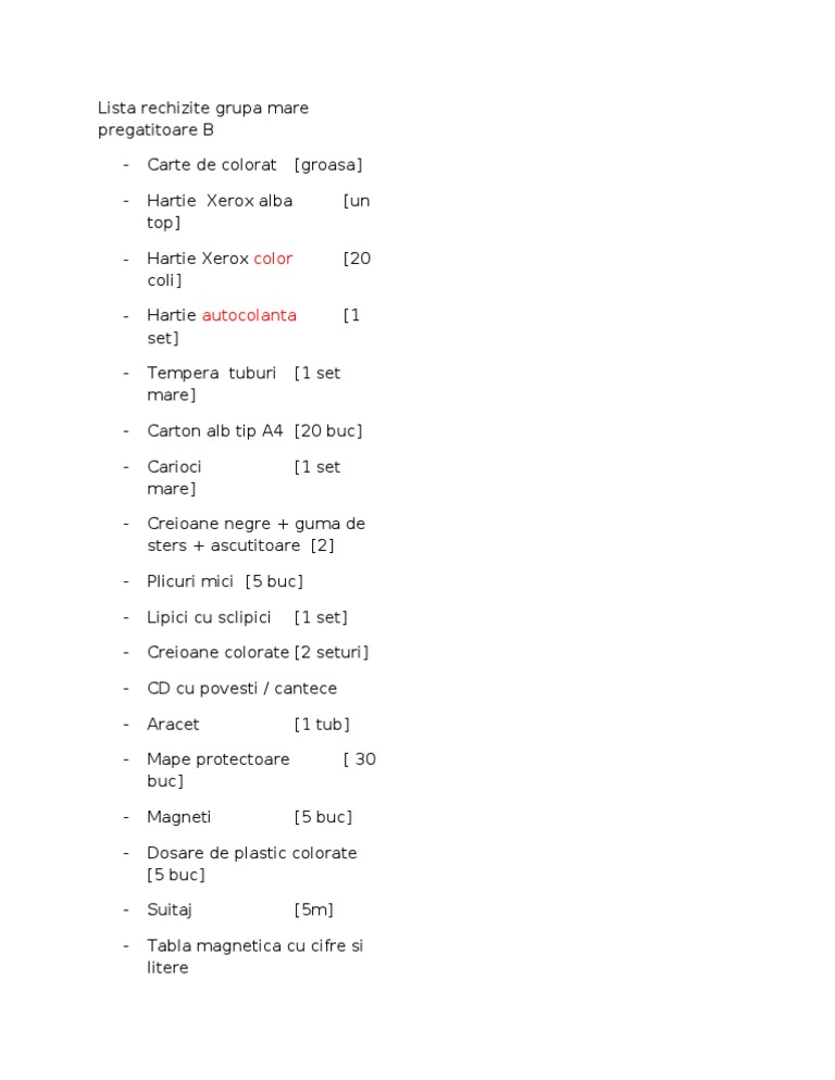 Lista Rechizite Grupa Mare Pregatitoare