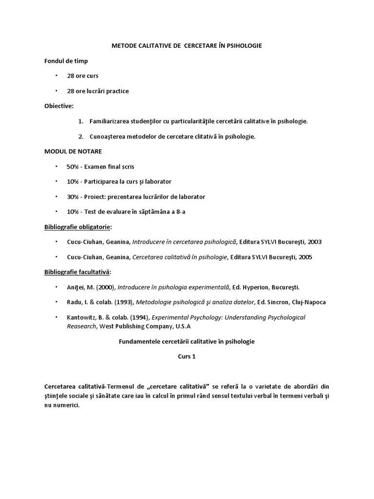 Metode Calitative De Cercetare In Psihologie