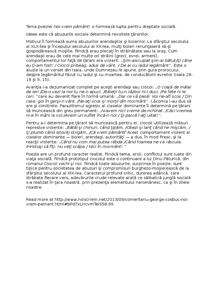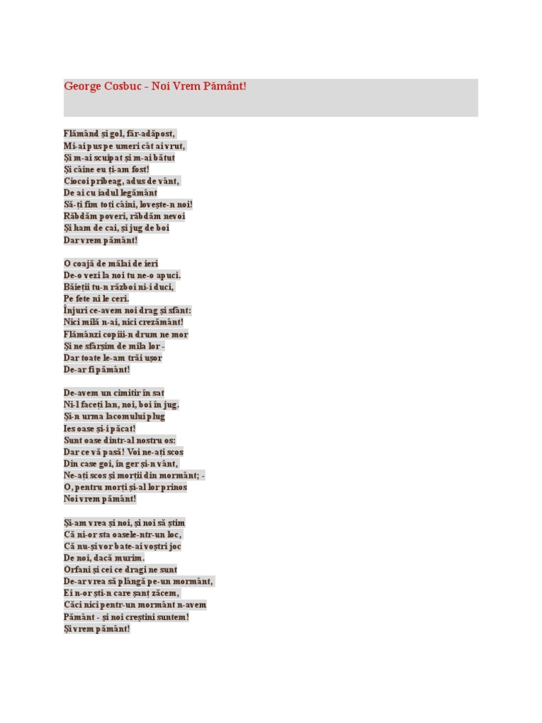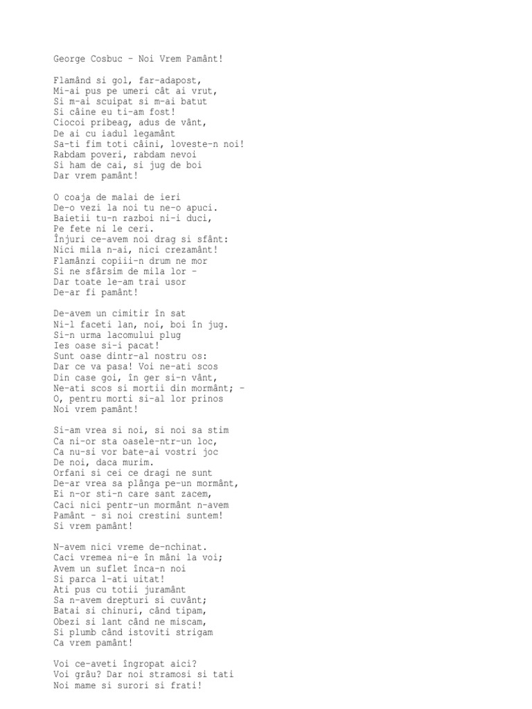 Citate Similare Cu Spunea Cosbuc Noi Vrem Pămant Acuma