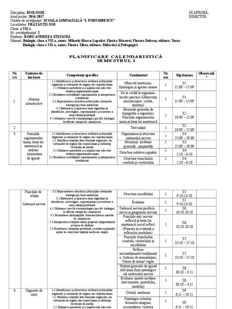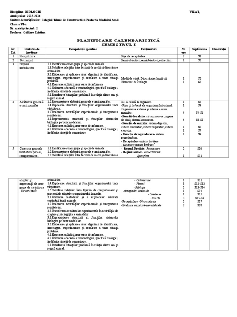 Proiectare Didactică De Lungă Durată La Biologie Clasa A Ix Docx