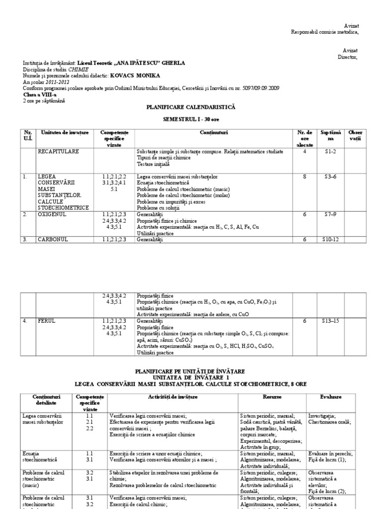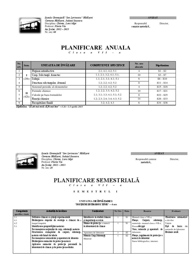 Planificare Chimie Clasa A Vii A