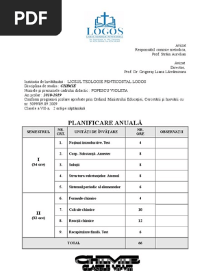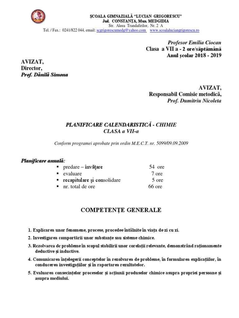 Planificare Chimie Clasa A Vii A 2018 2019