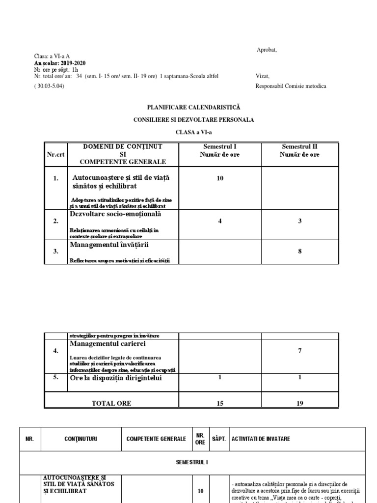 Planificare Consiliere Si Orientare Vi A 2019 2020