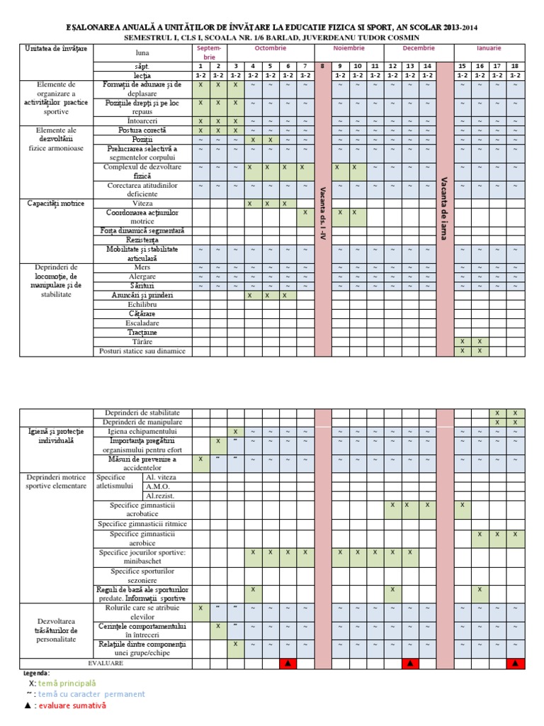 Eșalonarea Anuală A Unităților De Invățare La Educatie Fizica Si Sport