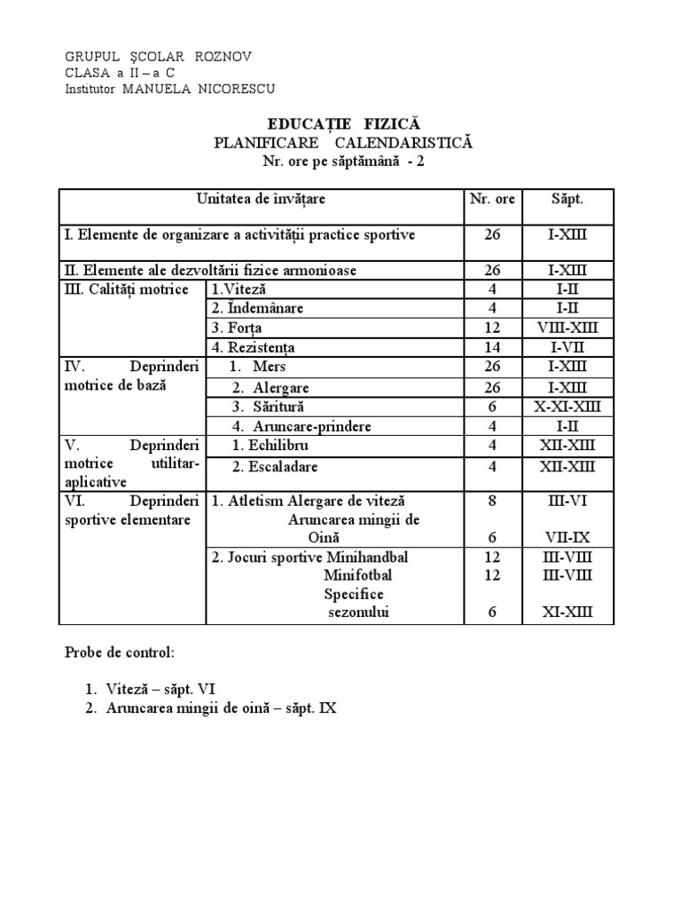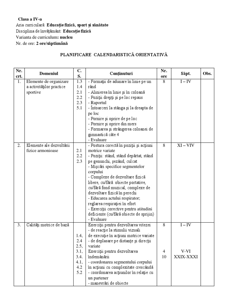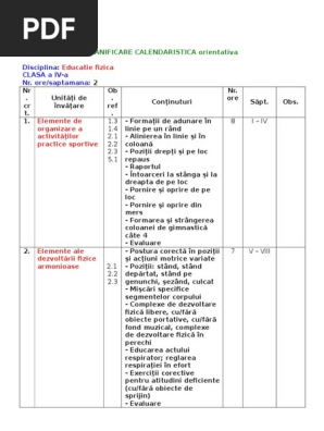 Planificare Educatie Fizică și Sport Clasa A Iii A Tyty333 13 10 2019