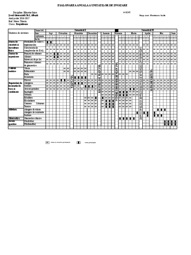 Planificare Educație Fizică 2016 2017 Clasa Pregătitoare Danielenuta 08 10 2016