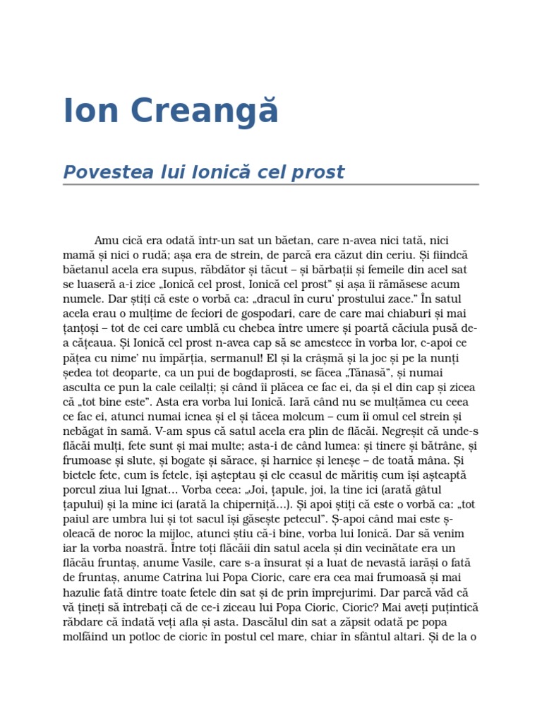 Ion Creanga Povestea Lui Ionica Cel Prost
