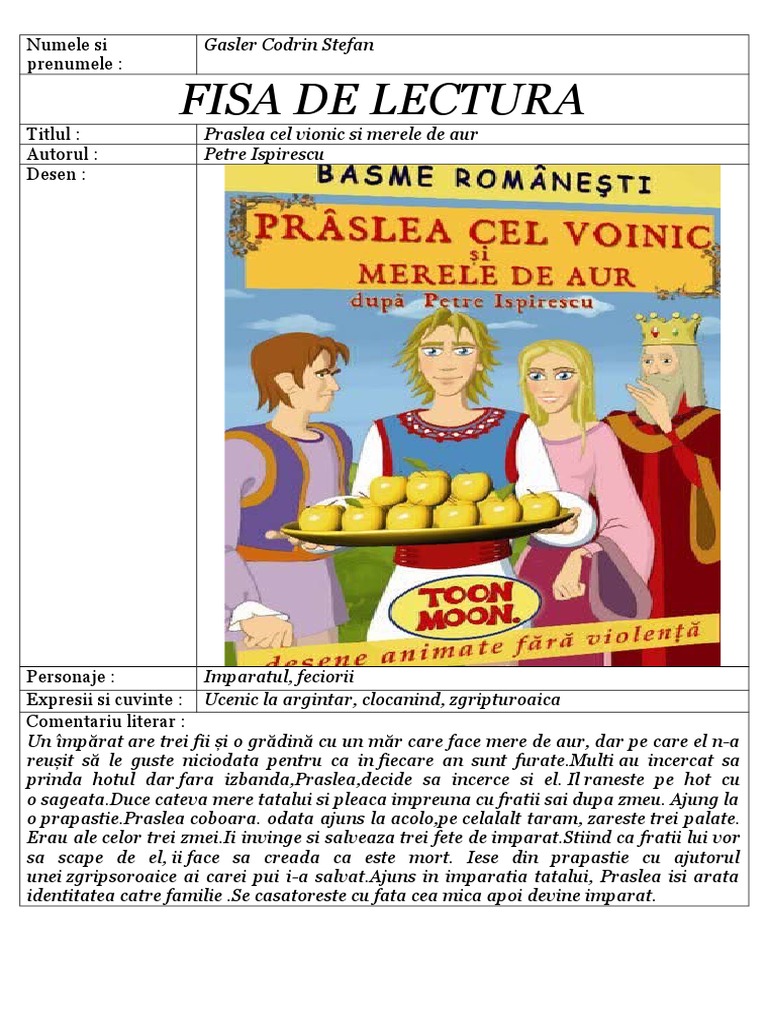 Praslea Cel Voinic Si Merele De Aur De Petre Ispirescu Kidibot Bătăliile Cunoașterii