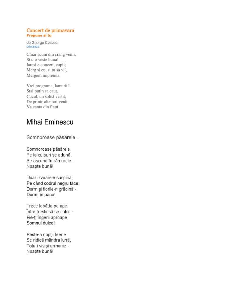 Poezii De Primavara George Cosbuc