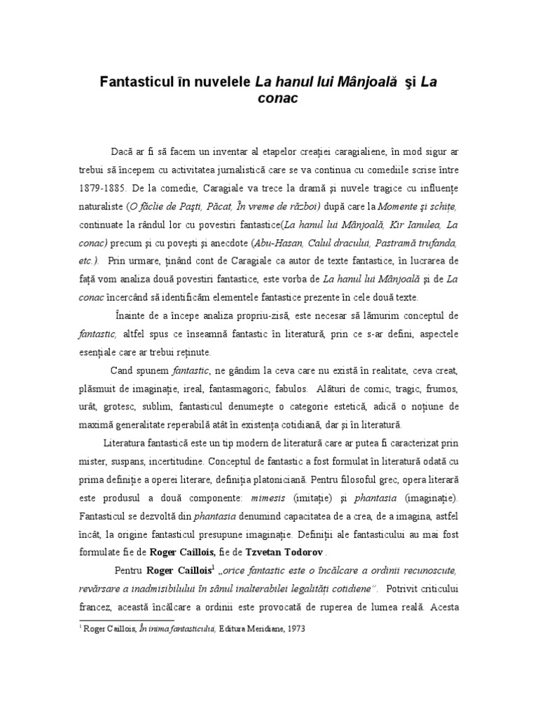 Fantasticul In Nuvelele La Hanul Lui Manjoală Si La Conac
