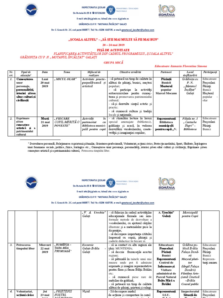 Planificare Scoala Altfel 2018 2019 Grupa Mică Atanasiu Florentina