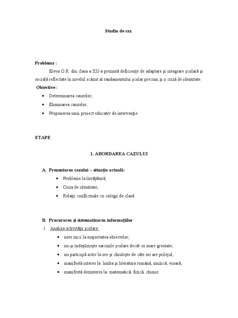 Proiect Studiu De Caz Proiect Psihologie 52579 Regielive