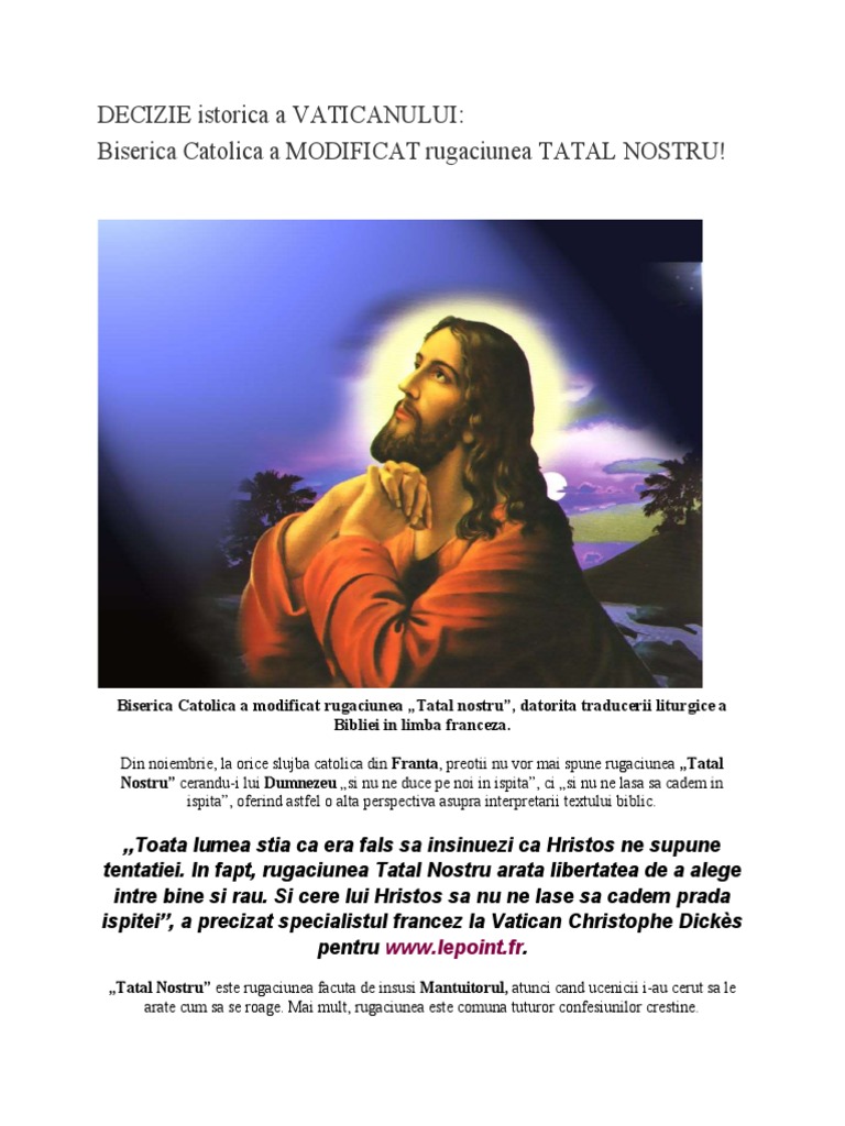 Biserica Catolica A Modificat Rugaciunea Tatal Nostru