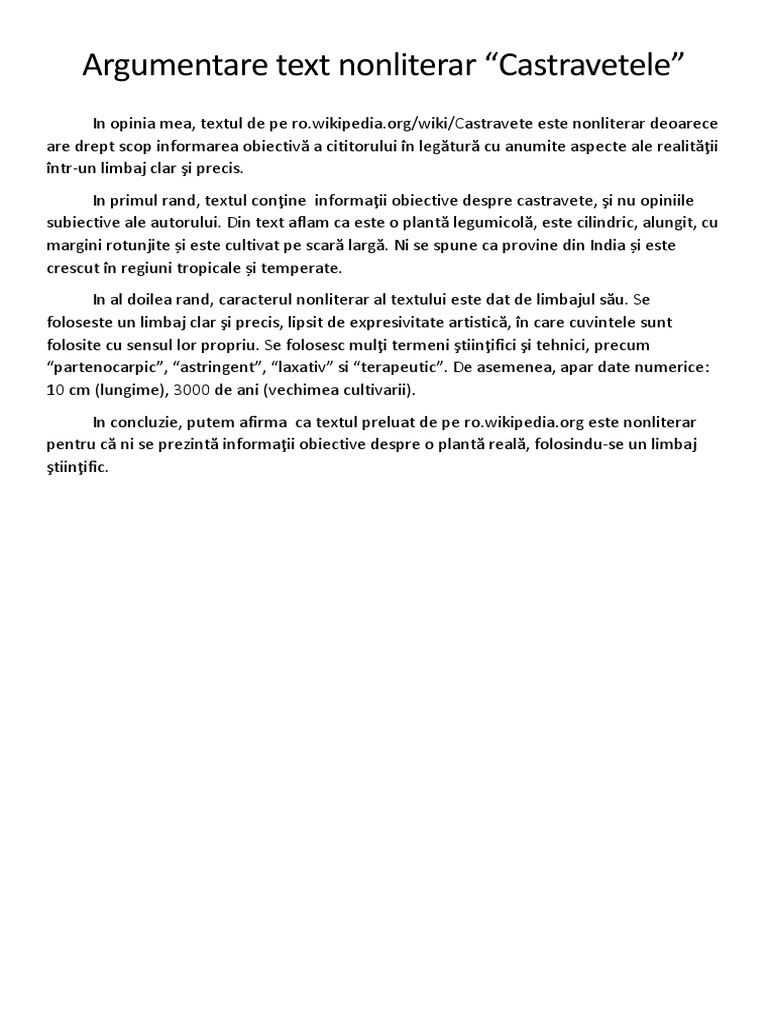 Argumentare Text Nonliterar Castravete