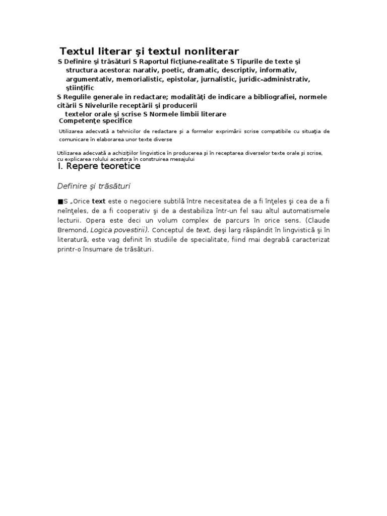 Textul Nonliterar Literar