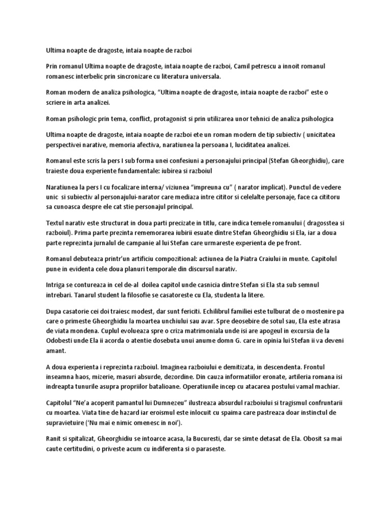 Doc Ultima Noapte De Dragoste Intaia Noapte De Razboi Camil Petrescu Popescu Andrei Academia Edu