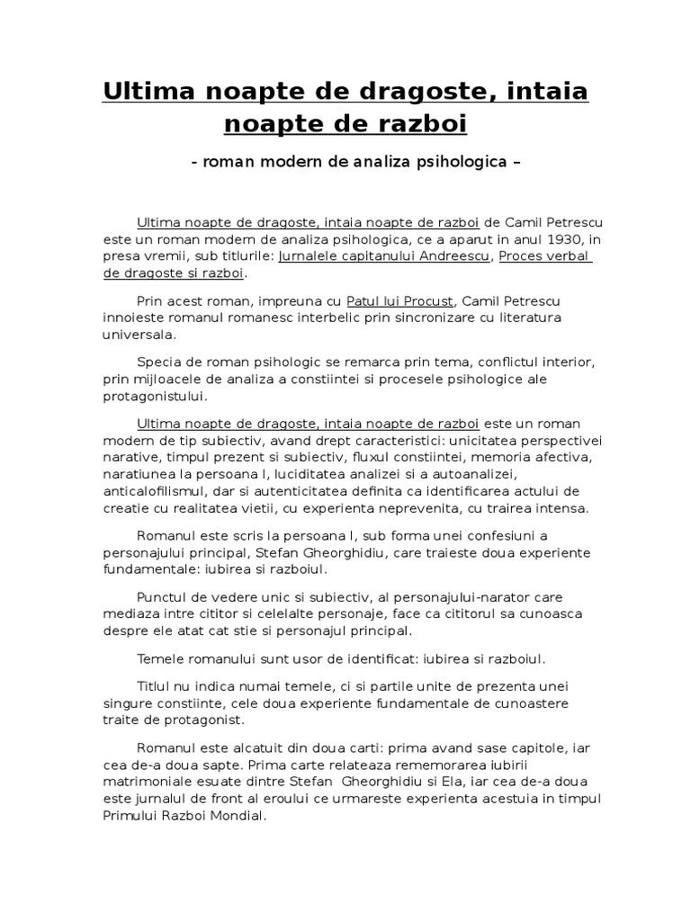 Www Referat Ro Romanul Subiectiv Modern Ultima Noapte De Dragoste I